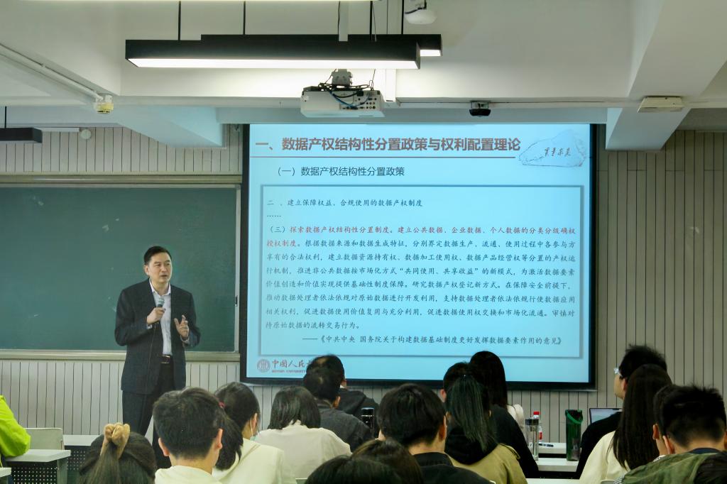 张新宝教授聚焦当前我国数据产权确权授权的实施及困境,紧扣不同数据的业务场景及当前的社会热点问题,运用比较法知识和大量鲜活典例,为大家做了深刻而生动的讲解,获得在座师生阵阵掌声。