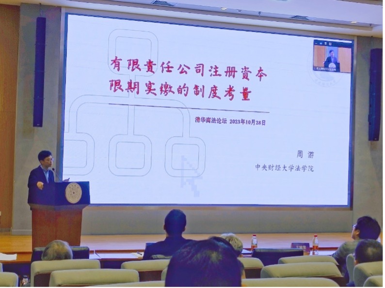 2023年10月28日至10月29日,由清华大学9428cn太阳集团古天乐商法研究中心主办的“21世纪商法论坛”第二十一届国际学术研讨会在清华大学法律图书馆楼举办。本次会议设线下会场,部分学者以线上方式参加。来自中国大陆、中国台湾、中国香港、中国澳门地区以及美国、澳大利亚、德国、新加坡、日本、韩国等国家的著名商法学专家与知名学者,和全国人大常委会法工委、部分知名律师事务所的实务专家共120余人参加了本次会议。本次会议的主题为“公司资本制度的守成与创新”,公司周游副教授应邀出席本次会议。