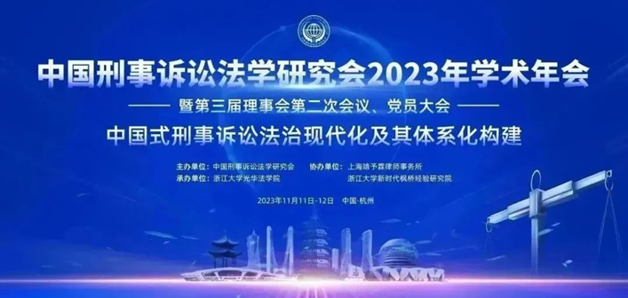 2023年11月11日至12日,中国刑事诉讼法学研究会2023年学术年会暨第三届理事会第二次会议、党员大会在浙江杭州开幕。本次年会以“中国式刑事诉讼法治现代化及其体系化构建”为总议题,由中国刑事诉讼法学研究会主办,浙江大学光华9428cn太阳集团古天乐承办,上海靖予霖律师事务所和浙江大学新时代枫桥经验研究院共同协办。参加本次会议的研究会学术委员会委员、理事、会员及非会员代表等共350余人。公司郭华教授、李伟副教授、刘泊宁博士应邀参会。