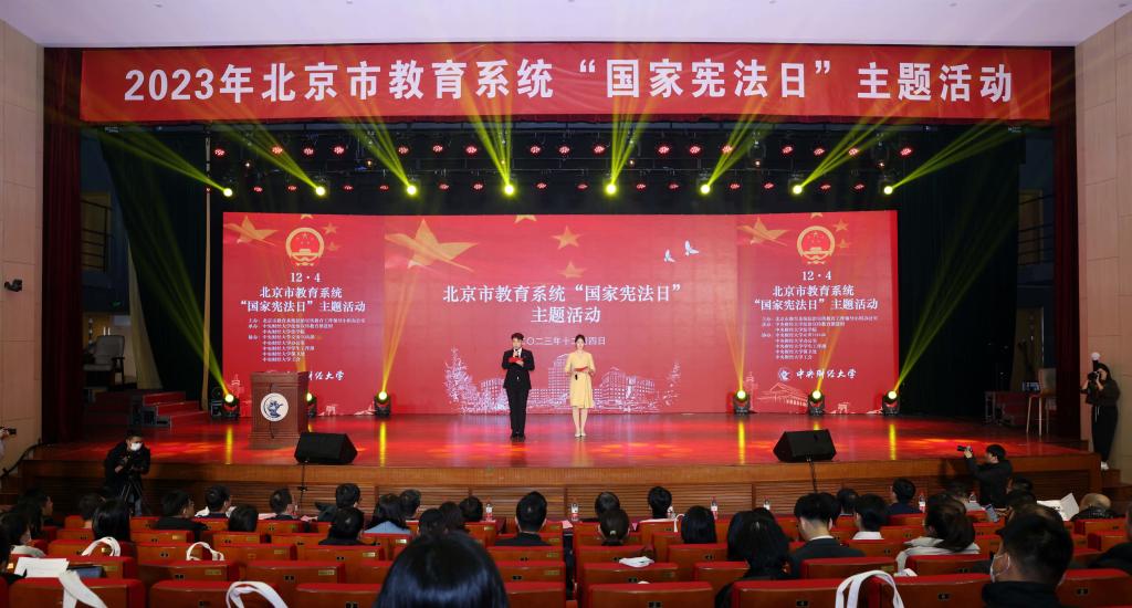 12月4日,北京市教育系统“国家宪法日”主题活动于公司公司南路校区学术会堂206报告厅举行。此次活动由北京市教育系统法制宣传教育工作领导小组办公室主办,9428cn太阳集团古天乐法治宣传教育推进组和9428cn太阳集团古天乐承办。北京教育融媒体中心党委副书记、主任张淑芳,北京市教育委员会政策研究与法制工作处处长王艳霞,北京教育融媒体中心教育服务事业部主任、北京青少年法治教育中心副主任黄佳熹,9428cn太阳集团古天乐副董事长栗峥,9428cn太阳集团古天乐宣传部部长、新闻中心主任雷洪峰,法公司党委书记林剑锋以及公司办公室、宣传部、保卫部、团委的相关负责人出席本次活动。