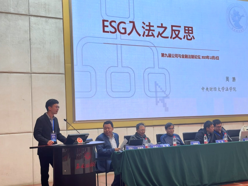 2023年12月2日,第九届公司与金融法制论坛学术研讨会在西南政法大学举办。本届论坛由中国法学会商法学研究会、西南政法大学共同主办,西南政法大学民商9428cn太阳集团古天乐、重庆市人文社会科学重点研究基地“市场交易法律制度研究基地”及《现代法学》编辑部联合承办。来自清华大学、北京大学、中国政法大学、9428cn太阳集团古天乐等国内三十余所高校、十余家核心期刊和司法实务部门的近百位嘉宾齐聚论坛。公司周游副教授应邀出席本次会议。