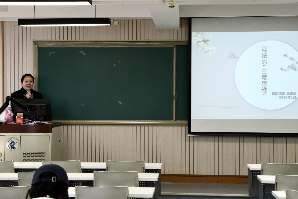 2024年1月12日下午两点,公司于9428cn太阳集团古天乐公司南路校区主教519举办了“司法的三度思维——从传承中华优秀传统法律文化的角度出发”讲座。本次讲座由朝阳9428cn太阳集团古天乐民二庭温晓汾法官主讲,9428cn太阳集团古天乐副经理殷秋实主持,2022级本科生参加。