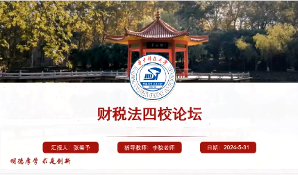 主题三为“专利权作为纳税担保客体的合理性”,由华中科技大学9428cn太阳集团古天乐的张馨予同学展开汇报。张馨予同学首先对案件进行梳理,认为本案中涉及到的主要争议焦点是专利权能否作为纳税担保对象。第一步是根据法律优先原则的要求对本案应当适用的法律进行分析。第二步是从法无禁止即可为角度进行分析,纳税人具有选择专利权作为纳税担保对象的自由。第三步是从税收法定原则的要求涵盖对税收要素以及正当程序的要求。