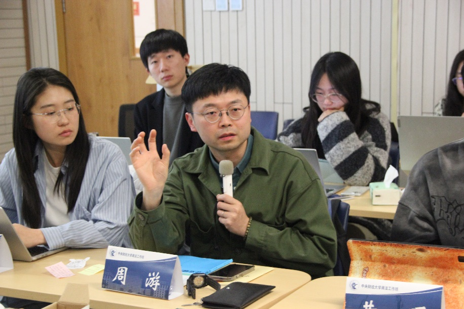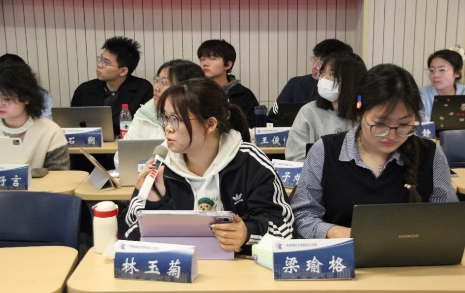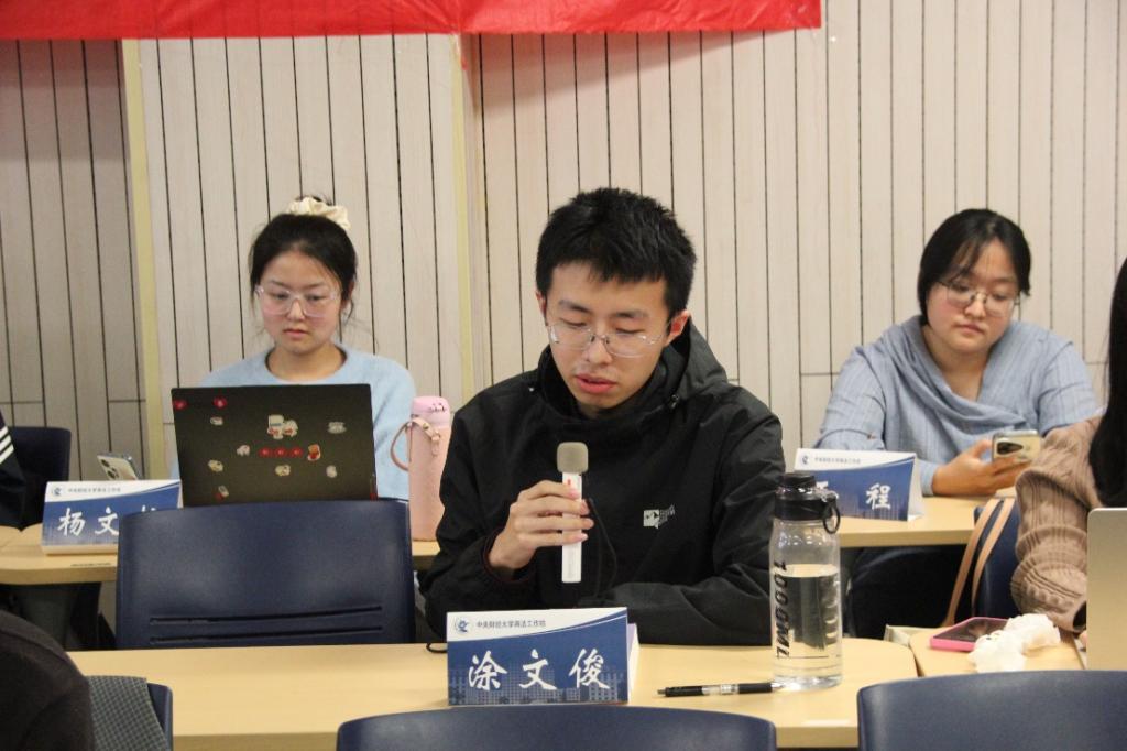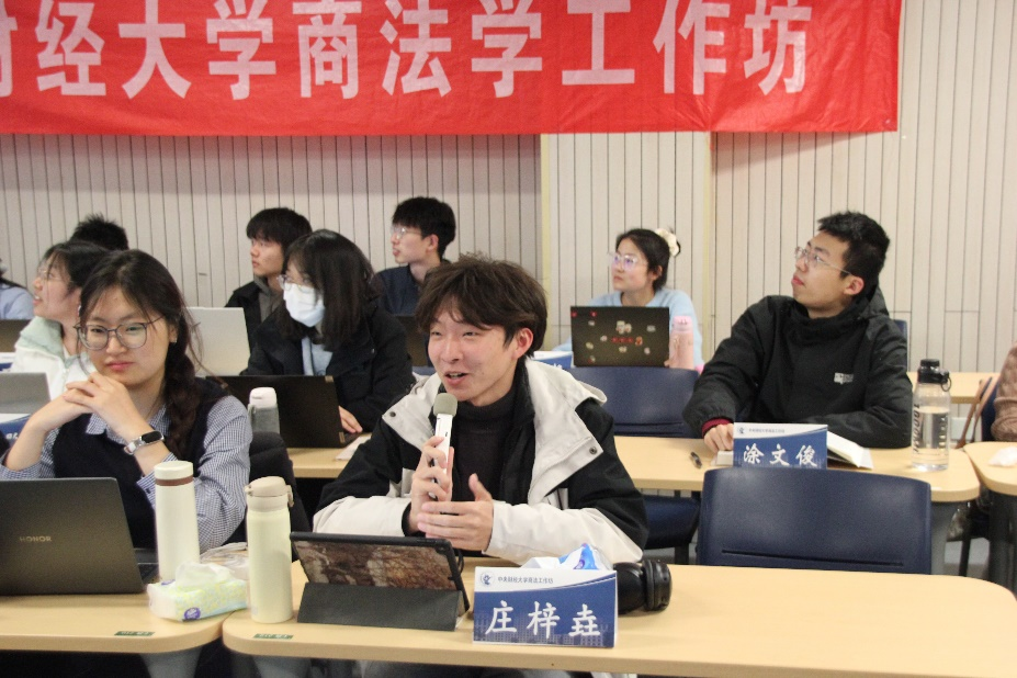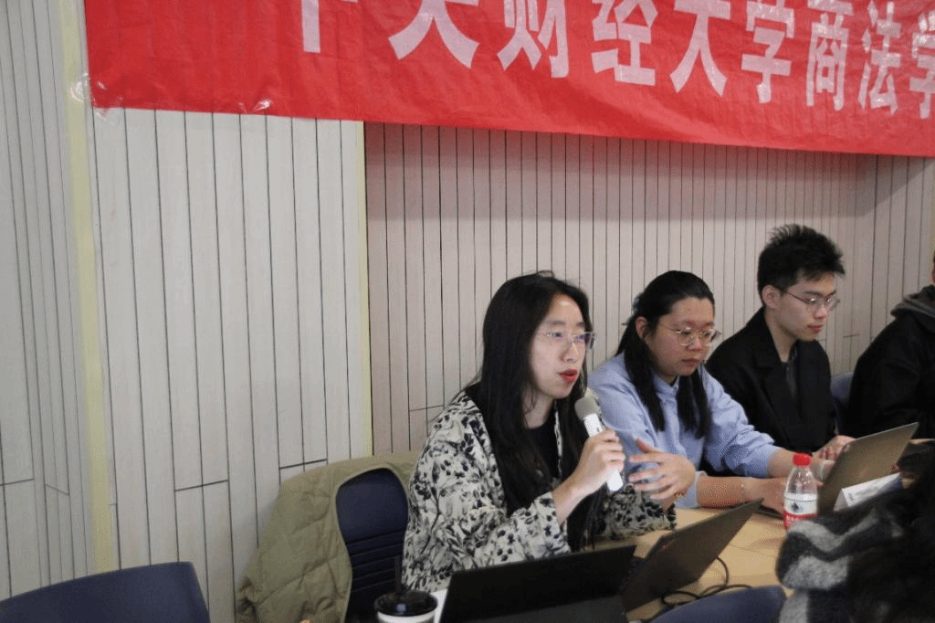 在自由讨论环节,屠宇尘和邵若愚结合自己之前对于海航集团破产重整案例的研究,借用图示的方法讲述了信托计划在企业破产重整过程中如何发挥重要作用,并为大家重点介绍了信托财产的独立性。在回应同学提问过程中,王嫣然指出,异议债权人的权益也应当得到保护,除了听证会这一方式之外,还应该采取更加多元的方式来救济异议债权人,使得其权益也能够得到保障。