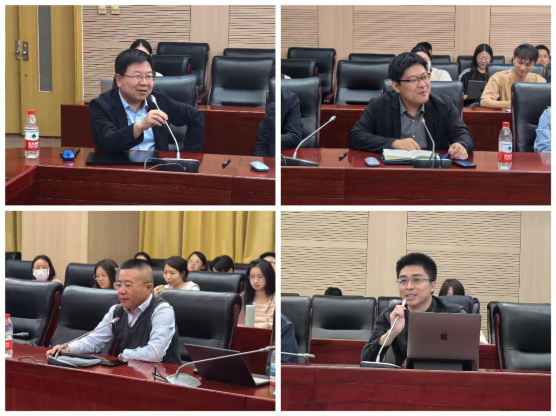 侯猛教授讲解深入浅出,逻辑环环相扣,获得在场师生的热烈掌声。在与谈环节,李伟副教授从司法制度研究视角对在行动中研究法学的方法表示充分赞同。于文豪教授用务实、人文和满怀情感三个词语对侯猛教授在法社科学领域的研究经历及成果表达了敬佩之情。张小平副教授从教学实践出发,对法教义学一定程度上也向法社科学开放的观点进行了阐述,并强调在实践中发现和获取经验的重要性。张泽宇讲师围绕法社科学中规范的因果关系及法教义学在整个法学体系中的定位问题表达了自己的感悟和思考。侯猛教授对上述与谈进行了回应,并解答了员工提出的“法设科学理论如何嵌入数字法治研究”以及“论文写作中如何引用与运用访谈材料”等问题。