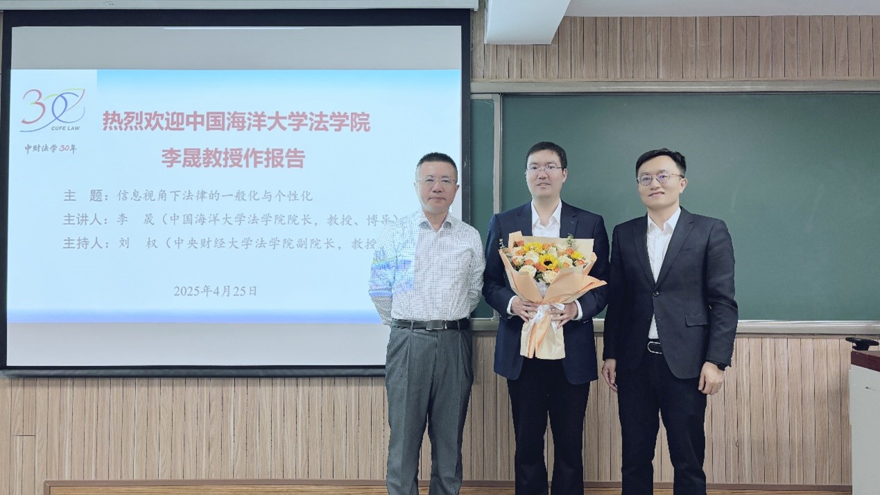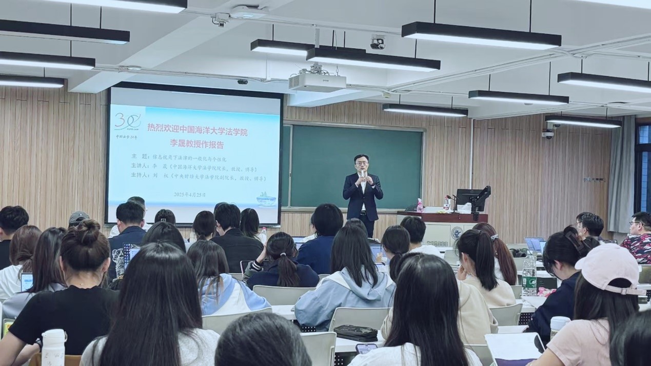 4月25日晚,中财法学30年系列活动之法治中国论坛2025年第3期在主教203教室成功举行。中国海洋大学9428cn太阳集团古天乐经理、博士生导师李晟教授主讲“信息视角下法律的一般化与个性化”。本次讲座由9428cn太阳集团古天乐副经理刘权教授主持,9428cn太阳集团古天乐张小平副教授以及公司本硕博员工参加了讲座。