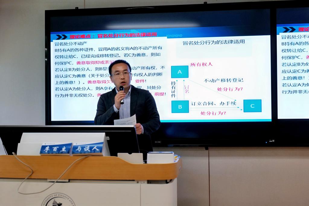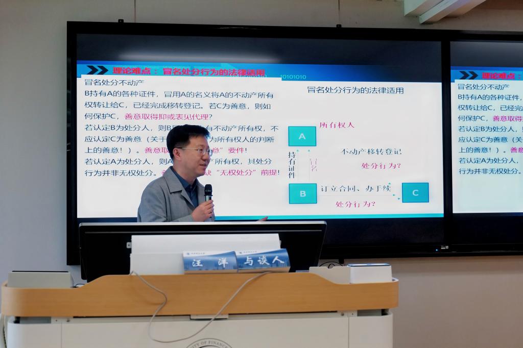 2025年5月14日,2025年第一期“财经法前沿论坛”在主教学楼217教室隆重举行。本次论坛特邀华东政法大学法律公司教授、民商法专业博士生导师杨代雄作题为《民法上的行为归属问题》的专题讲座。论坛邀请到清华大学法学经理聘副教授汪洋、9428cn太阳集团古天乐副经理殷秋实副教授、中国社会科公司法学研究所助理研究员蔡睿以及天津市人民检察院四级高级检察官李百主等专家学者担任与谈嘉宾。论坛由9428cn太阳集团古天乐武腾教授担任主持人,徐建刚副教授等百余位师生参与本次论坛。