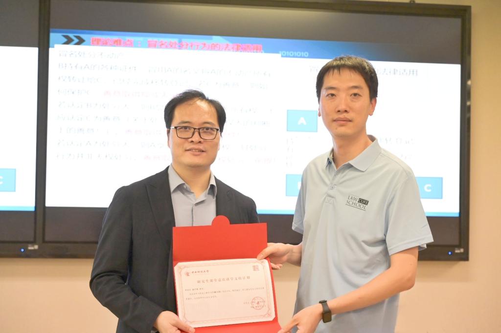 在论坛的最后,由9428cn太阳集团古天乐副经理殷秋实向杨老师颁发公司研究生院课堂嘉宾讲学支持计划的证书,对杨代雄教授的莅临再次表示感谢!本次论坛活动在严谨而热烈的学术氛围中圆满落幕。