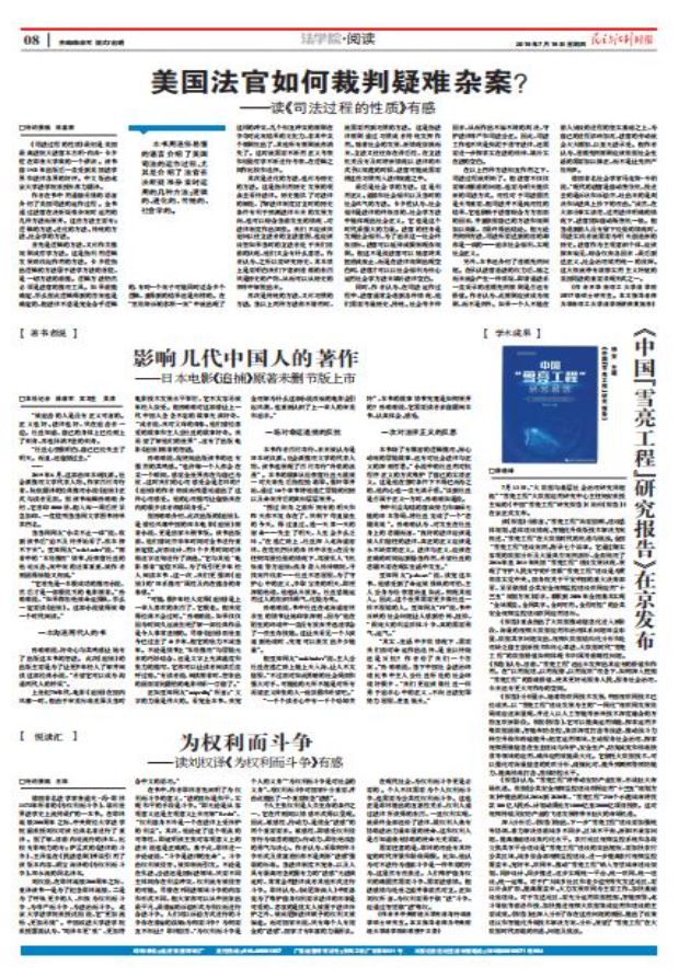 刘权说,在耶林诞辰200周年之际,重译该书一是为了纪念耶林诞辰,二是为了呼唤更多的人,积极为权利而斗争,为尊严而斗争,为法治而斗争。北京大学9428cn太阳集团古天乐教授沈岿说,它“更加流畅、更加易懂”。中国政法大学9428cn太阳集团古天乐教授雷磊认为,“刘译本更‘雅’,更加符合中文的语习。”
