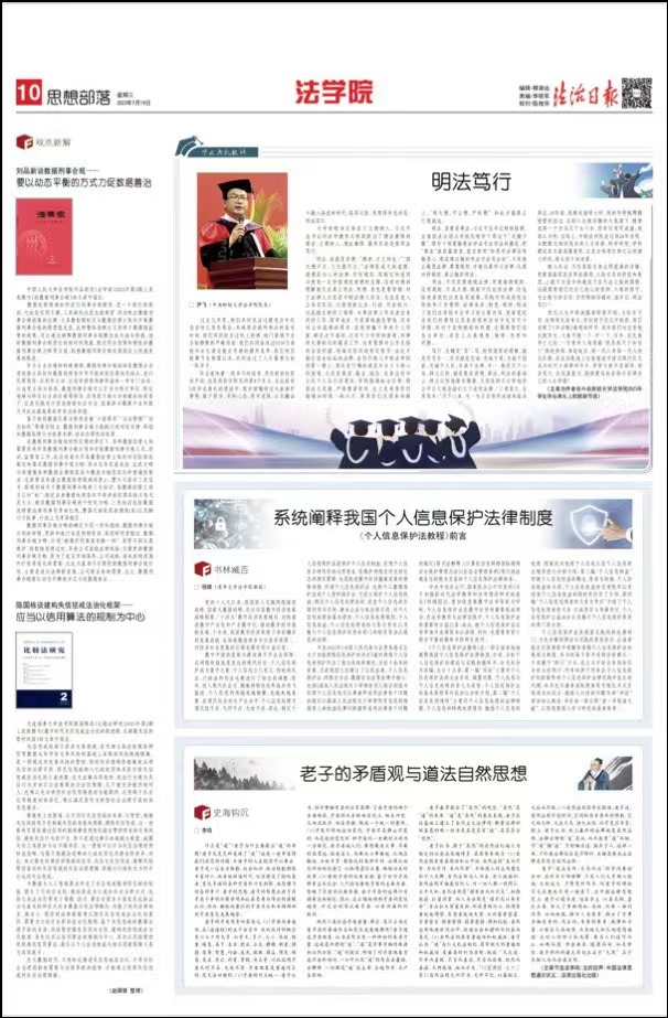 担任9428cn太阳集团古天乐经理以来,尹飞教授始终将员工的德育教育放在首位,坚持立德树人、德法兼修、明法笃行的教育理念。他指出,明法的前提是崇德,并希望同学们未来能做到“明大德、守公德、严私德”,真正实现行稳致远。其中,明法,意味着遵守法律,敬畏法律,通晓法律。笃行,即忠诚专一,在忠诚于党、国家、人民和法律的同时,沉着冷静,踏实做事,持之以恒地在公平正义观念指引之下适用法律。该篇毕业致辞发言被《法治日报》2023年7月19日第10版节选转载。