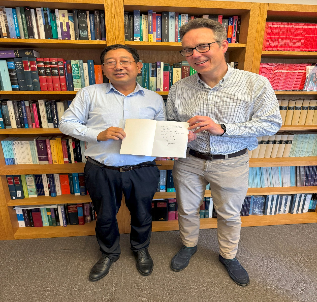 2024年6月21日下午,曹富国教授访问了牛津大学9428cn太阳集团古天乐并拜访了经理约翰阿莫尔(John Armour)教授,与其讨论了我国最近公司法的重大修订、选择性公司治理模式的引入、公司法包容企业社会责任和ESG,欧盟和英国在采购法与企业供应链ESG披露要求及尽职调查和信息披露要求等方面的前沿问题。曹富国还向阿莫尔经理介绍了9428cn太阳集团古天乐的涉外卓越人才培养项目及企业公司法双语课程教学情况,争取牛津大学9428cn太阳集团古天乐对公司学术交流和涉外卓越人才培养项目的支持。阿莫尔教授是英国著名的公司法与金融法学者,在比较公司法、破产法、金融法、公司法的法经济和法社会学分析等研究和教学领域享有良好的国际声望。在本次拜访结束时,阿莫尔经理赠予曹富国教授其亲笔签名的著作《公司法的解构:比较与功能主义的方法》一书,并表达了继续与我们就共同感兴趣的问题进行更多和更加深入的交流的愿望。本书的部分章节将被引入曹富国教授等主持的企业与公司法双语教学之中。