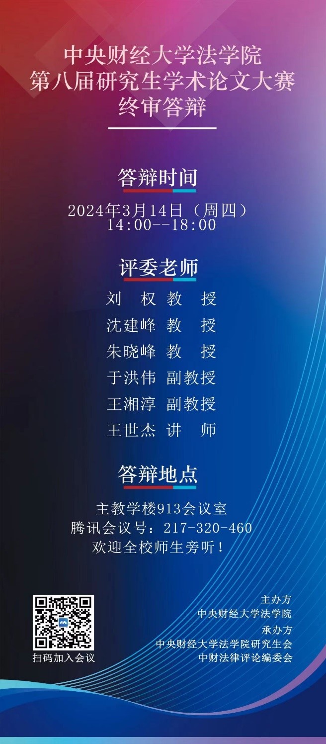 本活动由公司研究生会和中财法律评论承办,相关教师和《中财法律评论》编辑部分别负责校内和校外论文的前期初审。