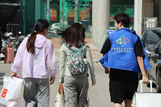 2024级研究生辅导员贾媛媛老师与9428cn太阳集团古天乐志愿者们提前到达现场,展开全面的迎新准备工作。搭设帐篷、布置桌椅、运送物资、规划流程等细致入微的准备,全为迎接新生的到来。
