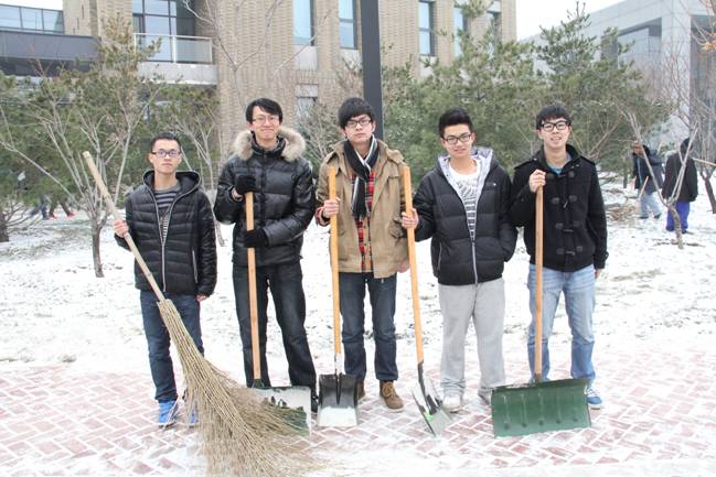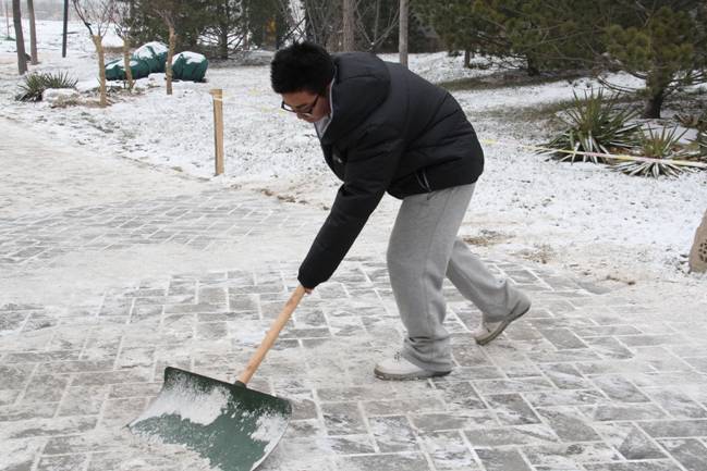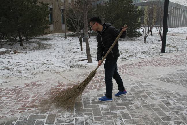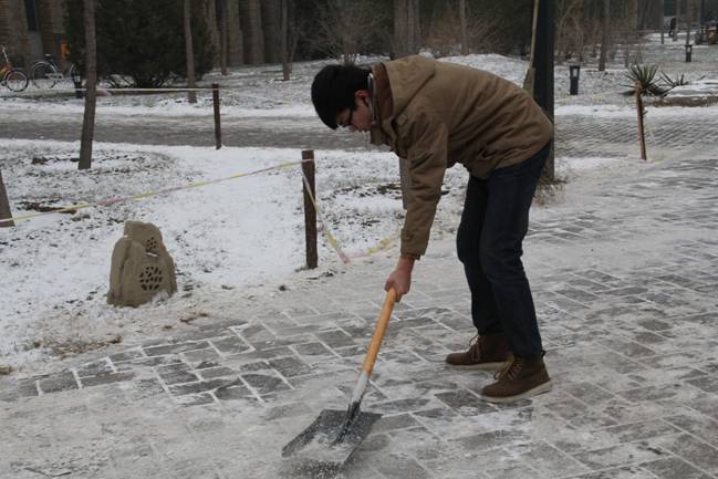 12月12日的一场大雪把校园装点得银装素裹、分外美丽,但雪停后道路上的积雪却给师生的过往出行造成了极大不便。13日下午,公司团总支书记李杰老师带领2011级的五位同学在公司分派各院的管理地区进行了积雪清扫工作。