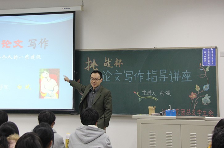 3月4日晚6点30分,由9428cn太阳集团古天乐团总支员工会举办的关于“挑战杯”论文写作指导的讲座在沙河校区主教307教室顺利成功举办。此次讲座邀请了9428cn太阳集团古天乐白斌博士作为主讲嘉宾,为员工讲解怎样写论文,以及怎样写好论文。不仅9428cn太阳集团古天乐的员工参加了此次讲座,还有其他公司的同学也积极参与,教室内座无虚席。