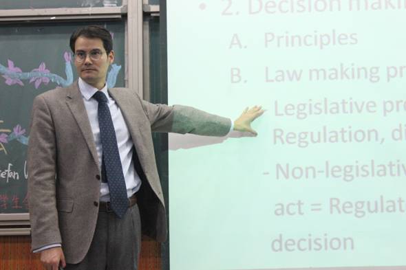 其次,Stefan Weishaar教授向同学们介绍了欧洲关于气候变化的立法机构及其组成。随着欧洲一体化进程的不断加深,欧洲气候变化的立法由欧洲议会和欧盟理事会共同决策制定。之后,Stefan Weishaar教授详细介绍了关于气候变化立法工作的程序和流程,让同学们了解到欧盟气候变化的立法所需的复杂而严谨的程序。