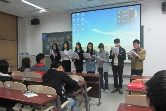 11月8日晚6点30分,公司2012级2班与2013级2班在沙河主教210教室开展了题为“青春致敬中国梦、百姓共话中国情”的主题教育系列活动成果展示。2012级2班与2013级2班全体同学参加了本次展示活动,公司团总支书记李杰老师也到场全程观看了本次主题教育成果展示。