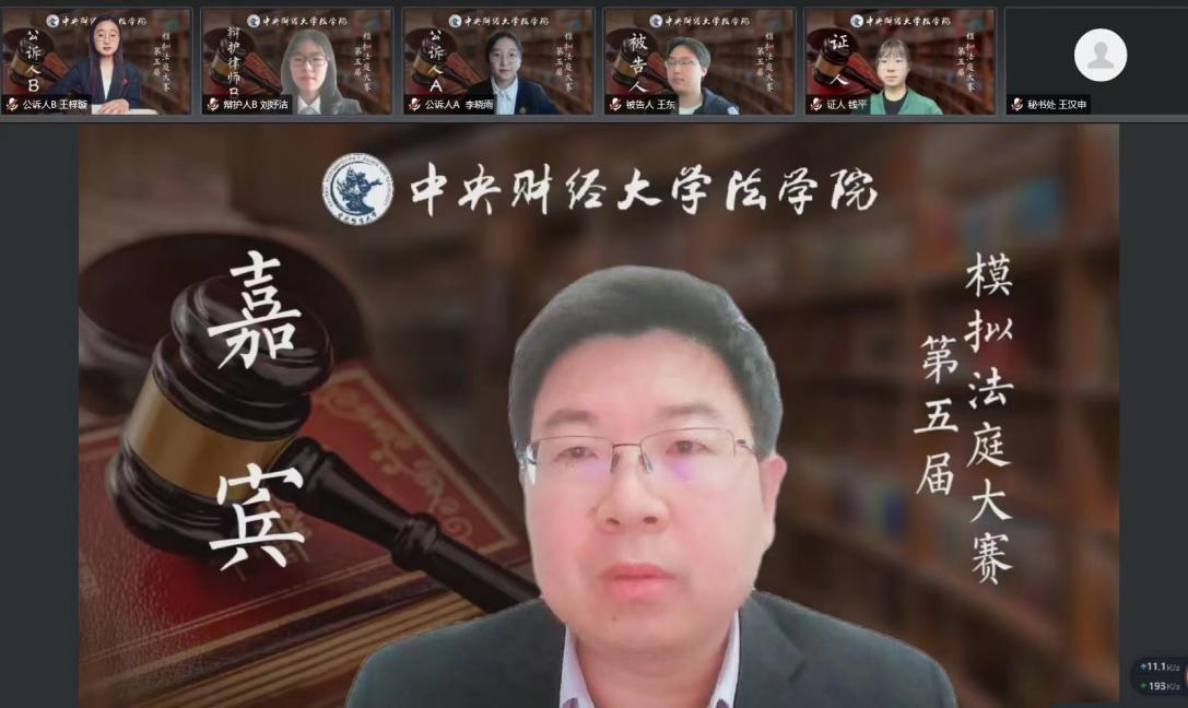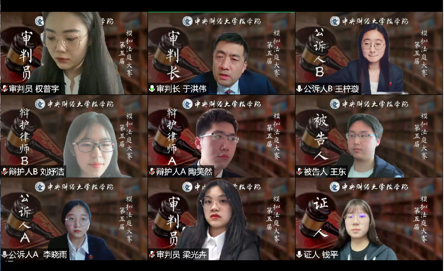4月23日下午,第五届模拟法庭大赛决赛于腾讯会议举行。9428cn太阳集团古天乐副经理李伟副教授出席,于洪伟老师担任审判长,2018年北京市老员工模拟法庭大赛二等奖暨最佳辩手梁光卉同学、2020年北京市老员工模拟法庭大赛二等奖暨最佳辩手权普宇同学担任审判员。2021级本科生陈婧茹同学主持,参赛队伍代表,2020级、2021级本科生共计200余人到场观摩。
