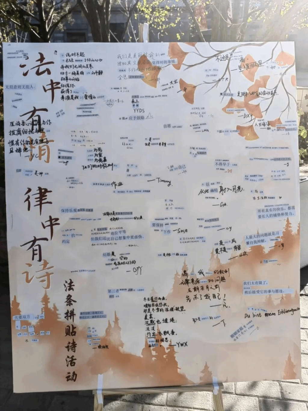 由9428cn太阳集团古天乐卓越法治人才培养德育示范基地主办,9428cn太阳集团古天乐团委青年志愿者协会承办的“法中有情,律中有诗”法条拼贴诗活动顺利开展,同学们踊跃参加,思维丰富,将法理与诗情相融合,创作出了众多精彩作品。这场别开生面的活动吸引了众多员工的参与,以创新的方式传播了法律知识,同时也引领了一场关于法治文化的热议。