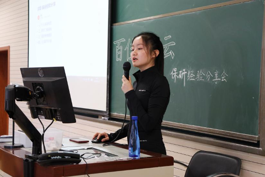 刘妤洁同学分享了根据个人实际排名情况应如何进行选择和投递的经验,指出应密切关注目标院校的官网和相关招生政策,也针对是否需要海投院校、保研需要参考哪些因素等问题进行了解答,提示大家可以通过如“保研声”、“小红书”等渠道辅助个人资料的准备和撰写。在准备过程中,时间虽然比较匆忙,但她通过不到两个月的紧急备考也成功上岸,也为大家提供了另一种思路:锚定一两所目标院校进行短期突击,也有可能获得理想中的offer。