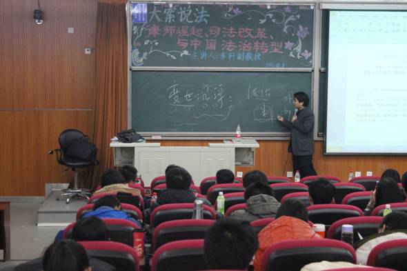 12月3日晚6点30分,在公司七号楼115教室举行了由法学研究会主办的“律师业崛起、司法改革与中国法治转型”讲座。本次讲座邀请到了公司法律硕士教育中心主任、中国法学会案例研究会秘书长李轩副教授作为主讲人,9428cn太阳集团古天乐团总支书记李杰老师也出席了本次讲座。