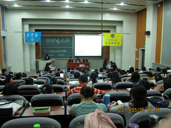 5月25日晚,由公司法学研究会与北京师范大学9428cn太阳集团古天乐法学社主办的模拟法庭友谊赛在沙河校区4号楼107教室举行,公司副经理刘双舟教授、北京岳成律师事务所岳屾山律师、公司李轩副教授、白斌博士、团总支书记李炎老师出席此次比赛并担任评委,两校主办社团、各兄弟社团代表及百余名同学观看了比赛。