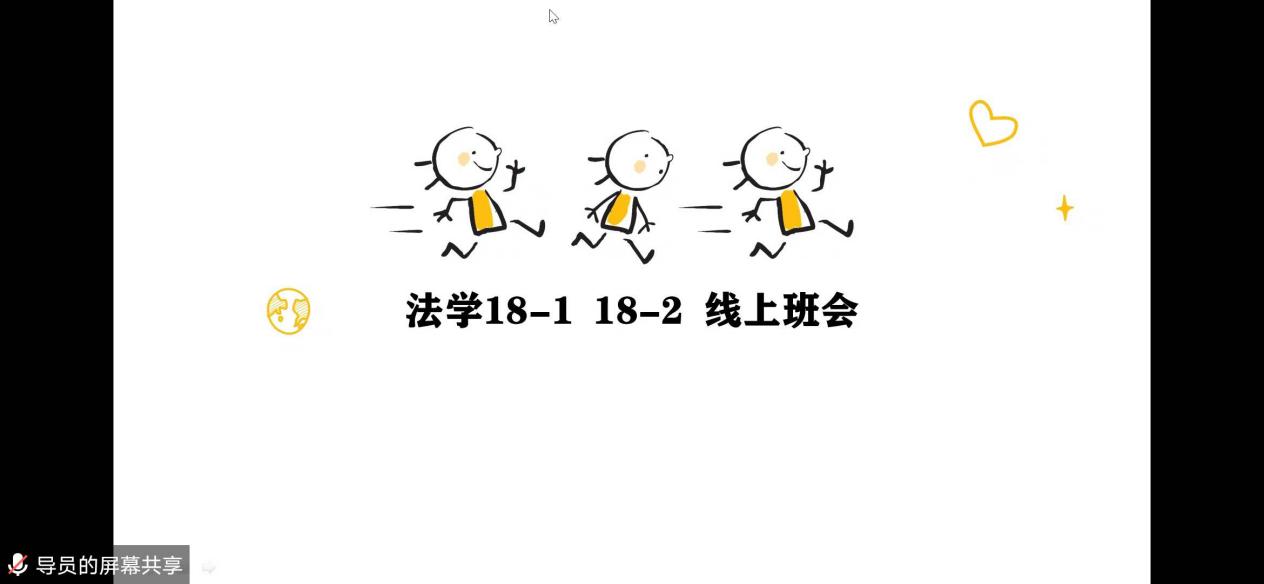 2020年4月10日下午两点,法学18-1、18-2班通过腾讯会议联合举办了一场别开生面的“云班会”。法学18-1班主任周游副教授、法学18-2班主任武腾副教授、2018级本科生辅导员张瑞佳老师与法学18-1、18-2班全体同学一起参加了这场疫情期间的特殊线上班会。