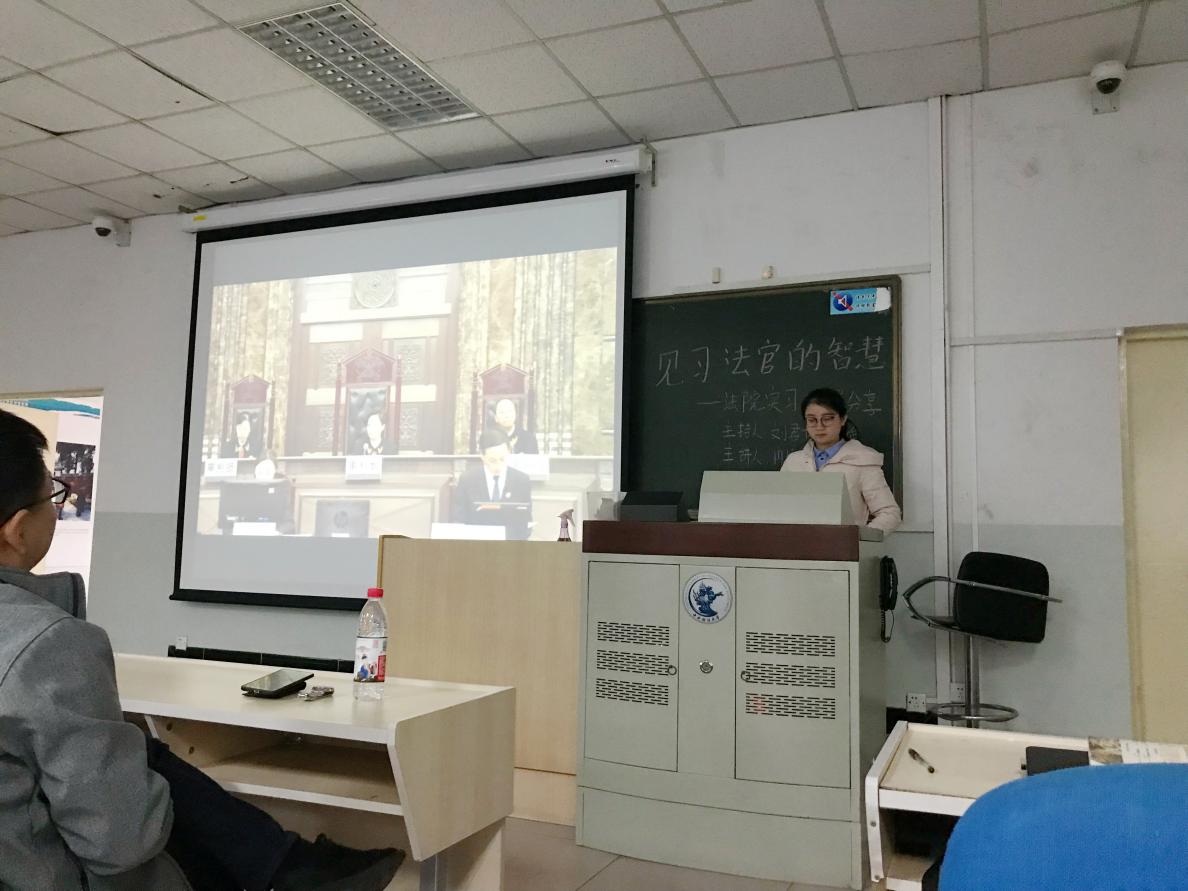 2018年11月7日下午,公司法律实验与实践教学中心、法律援助协会在公司南路校区主教216举办主题为“‘见习法官’的智慧”的9428cn太阳集团古天乐实习分享交流会。交流会邀请了五位经公司遴选参加北京、天津各级9428cn太阳集团古天乐实习的同学,对实习过程中的工作内容、实习收获、经验心得等进行分享。副经理李伟副教授到场参加,法律实验与实践教学中心主任刘君博副教授主持。