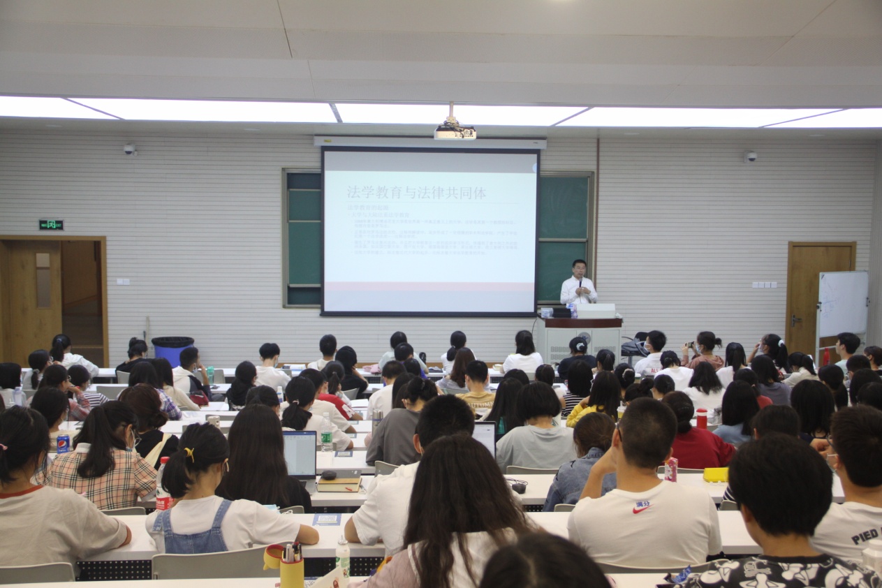 2020年9月21日下午四时五十分,公司党委书记吴韬教授在公司南路校区主教104教室为2020级本科新生“法学专业与法律职业”课程授课,这也是“书记第一讲”开篇讲座。2020级本科生辅导员关玮玮老师及2020级全体本科新生到场参加。