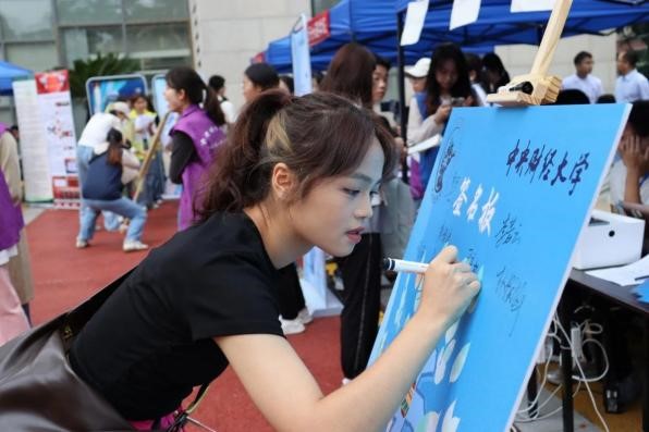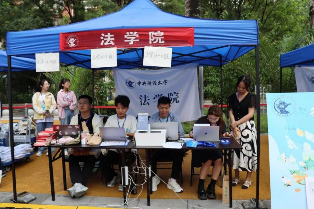 新生辅导员郭亦岚老师和志愿者们早早抵达现场进行准备工作,满怀期盼地迎接新生们的到来。新生抵达现场后,班级助理帮助其完成系统报道工作。为了表达期盼和欢迎,公司还为每一位新生精心准备了大礼包。2023级的新生们在迎新签名板上留下了自己的姓名,这将会是他们与中财大法学结缘的开始,也将会成为他们美好记忆中的一部分。