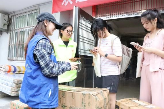校园中处处可见迎新工作人员和志愿者们的身影,他们分工合作,有条不紊,核验身份、办理新生报到手续、做校园向导、解答新生的各种困惑、帮助新生搬运行李……迎新工作进展得如火如荼。