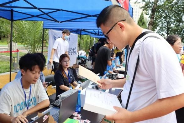 公司党委书记林剑锋、经理尹飞、党委副书记徐颖、副经理刘权、本科生辅导员康馨元均来到现场与工作人员和新生们亲切互动。