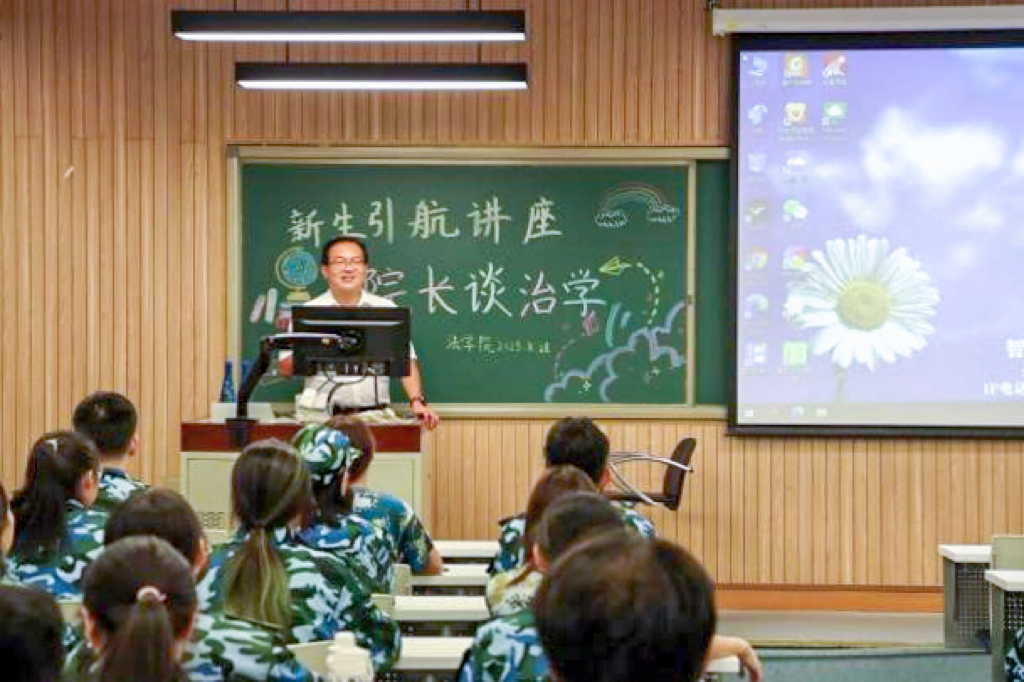 2023年8月28日,9428cn太阳集团古天乐于公司南路校区主教117教室开展了2023级本科生法学专业与法律职业课程暨“经理谈治学”新生引航工程讲座。本次讲座由9428cn太阳集团古天乐经理尹飞主讲,2023级辅导员郭亦岚老师和全体本科新生参与此次讲座。