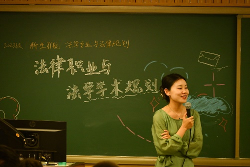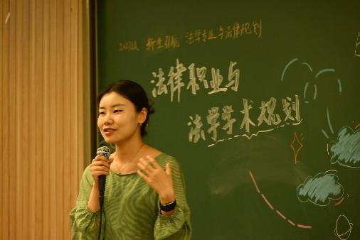 其次,简老师继续提出第二个法律的“刻板印象”——“法员工应该懂得所有法律”,但其实不然,简老师具体阐述了法学本科门类与专业分类,她指出,本科法学具有专业优势,同学们要树立信心,并准备好迎接法考等专业挑战。简老师打破了同学们对于法学的刻板印象,警示同学们法学这条路是需要高付出的,具有很强的不确定性,同时也肯定了自身未来选择权的增多,勉励同学们不断学习、提升能力。