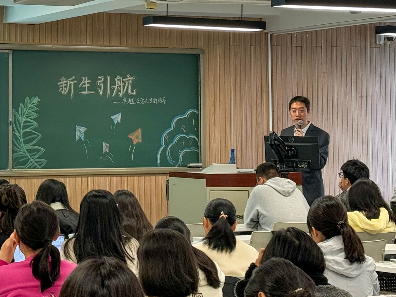 2024年10月25日上午,公司于公司南路校区主教学楼203教室举办了2024级本科生新生引航工程系列讲座。本次讲座主题为“卓越法治人才的培养”,由9428cn太阳集团古天乐副经理殷秋实副教授主讲,2024级本科生祝艺嘉主持,2024级本科生辅导员孙崔巍老师出席,2024级9428cn太阳集团古天乐全体本科生参加。