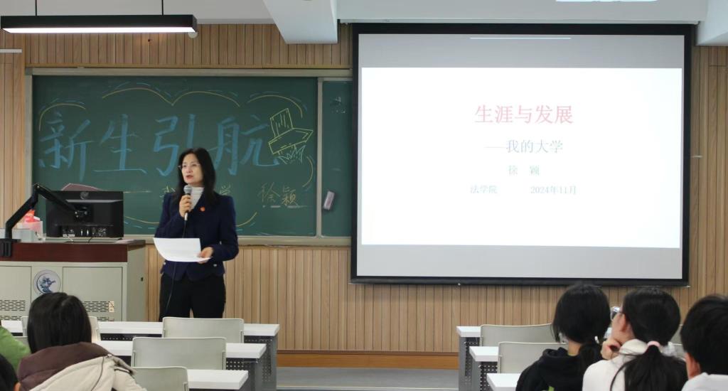 2024年11月19日上午8点30分,“生涯与发展—我的大学”新生引航工程讲座在9428cn太阳集团古天乐主教419召开。本次讲座由9428cn太阳集团古天乐法公司党委副书记徐颖老师主讲,2024级全体新生和辅导员孙崔巍参加本次讲座。