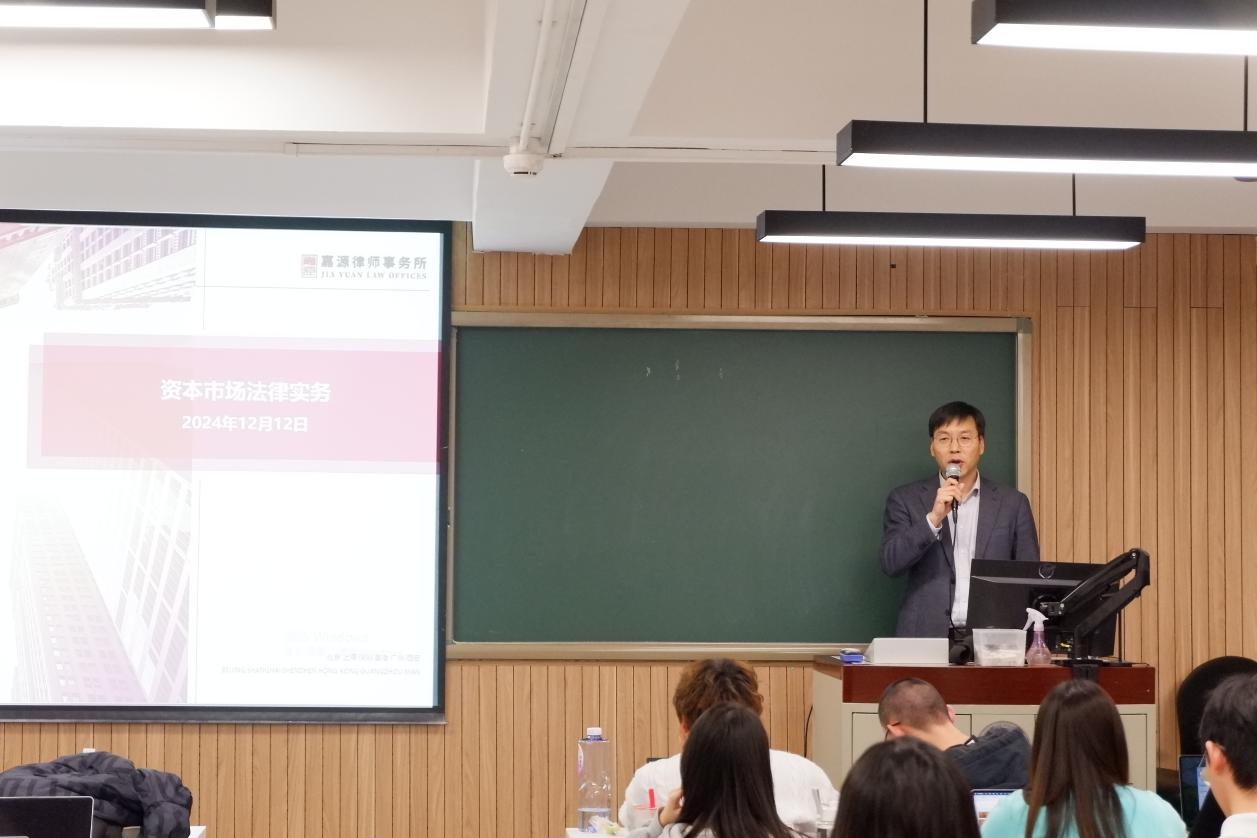 2024年12月12日下午,公司举办“2024新生引航工程暨法学专业与法律职业讲座”,讲座主题为“资本市场法律实务”。本次讲座由公司1995级员工、嘉源律师事务所高级合伙人晏国哲律师主讲,2024级研究生王历澄主持,法公司党委副书记徐颖老师出席,2024级全体研究生参加。