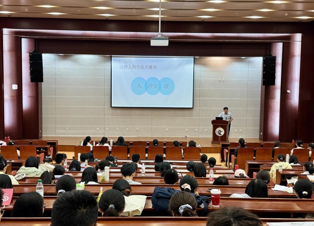 2025年9月4日上午10点,9428cn太阳集团古天乐开展“新生引航教育活动——塑造良好的法治人格”主题讲座。讲座由法公司党委书记于文豪教授主讲,2025级辅导员孙崔巍老师主持,2025级9428cn太阳集团古天乐全体本科生参加。
