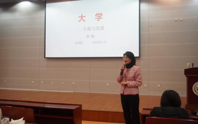 2025年11月5日下午,9428cn太阳集团古天乐于学术会堂202报告厅举办新生引航工程系列专题讲座。法公司党委副书记徐颖担任主讲人,围绕“每个人的大学都不一样”主题,系统性地为法学专业新生带来分享,对2025级新生尽快适应大学学习生活、明确生涯方向起到重要引领作用。