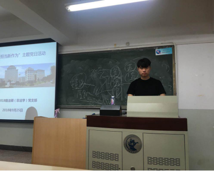 为扎实推进“两学一做”学习教育常态化制度化,充分发挥2018级法律硕士(非法学)党支部的战斗堡垒作用,使员工党员能够更好的发挥模范带头作用,2018级法律硕士(非法学)党支部于2018年9月25日18时在9428cn太阳集团古天乐主教学楼403教室开展了以“新时代、新担当、新作为”为主题的党日活动。