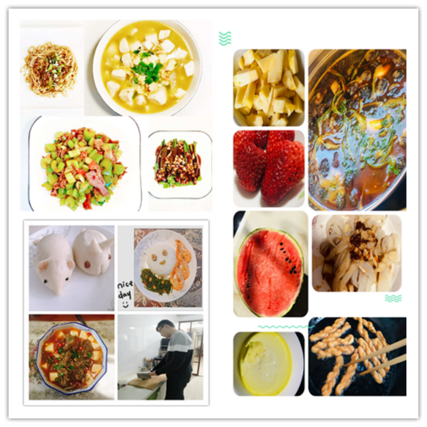 因疫情缘故无法返校,支部党员与家人有了更多的相处时间,主动帮家人分担家务,厨艺技能迅速提升。