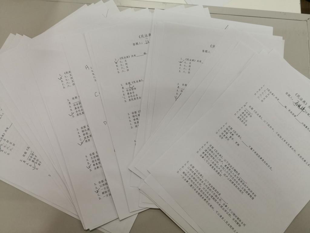 本次知识竞赛活动以《民法典》正式通过为契机,紧密结合法学学科特点,题目知识点覆盖民法典的诞生历程、法治意义、总则和分编内容等多层次多维度。活动要求全体教职工先行开展《民法典》的自我学习,再采用灵活选择时段自行填答纸质问卷的形式检测学习成果。问卷填答过程中,公司领导班子带头参与,教职工积极响应、认真填答,针对部分题目及个人关心的民法问题还进行了交流互动,在公司范围内掀起了学习《民法典》的热情潮。