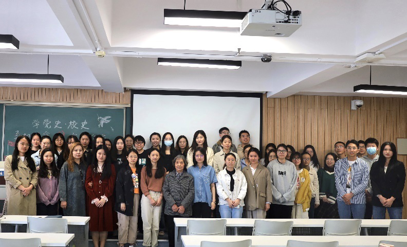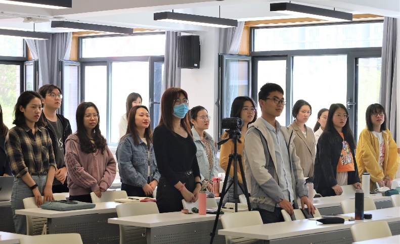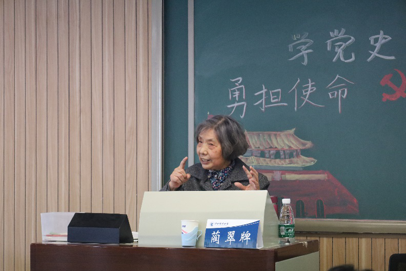 讲座伊始,蔺翠牌教授首先强调了青年一代学习党史的意义。在与同学们共同合唱《没有共产党就没有新中国》之后,蔺教授以其父亲的抗战经历为引,带领同学们共同回望那个战火纷飞的年代。她提醒同学们时刻谨记中国共产党是如何带领中国人民一步步从站起来到富起来的。她指明没有中国共产党,就没有今天繁荣昌盛的新中国。蔺教授希望青年一代在今后的前行发展中铭记党的艰辛发展史,在自我的学习生活中践行共产党人的初心与使命,为祖国的伟大复兴而奋斗。
