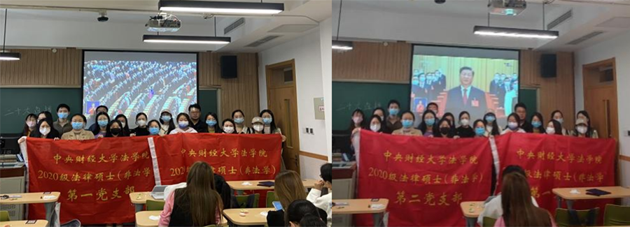 凝心聚力擘画复兴新蓝图,团结奋进创造历史新伟业。10月16日上午10时,中国共产党第二十次全国代表大会在人民大会堂隆重开幕。2020级法律硕士(非法学)第一、第二党支部在主教317共同收看开幕会盛况,认真聆听习近平总书记向大会所作的报告,并于观看结束后畅谈深切感悟。