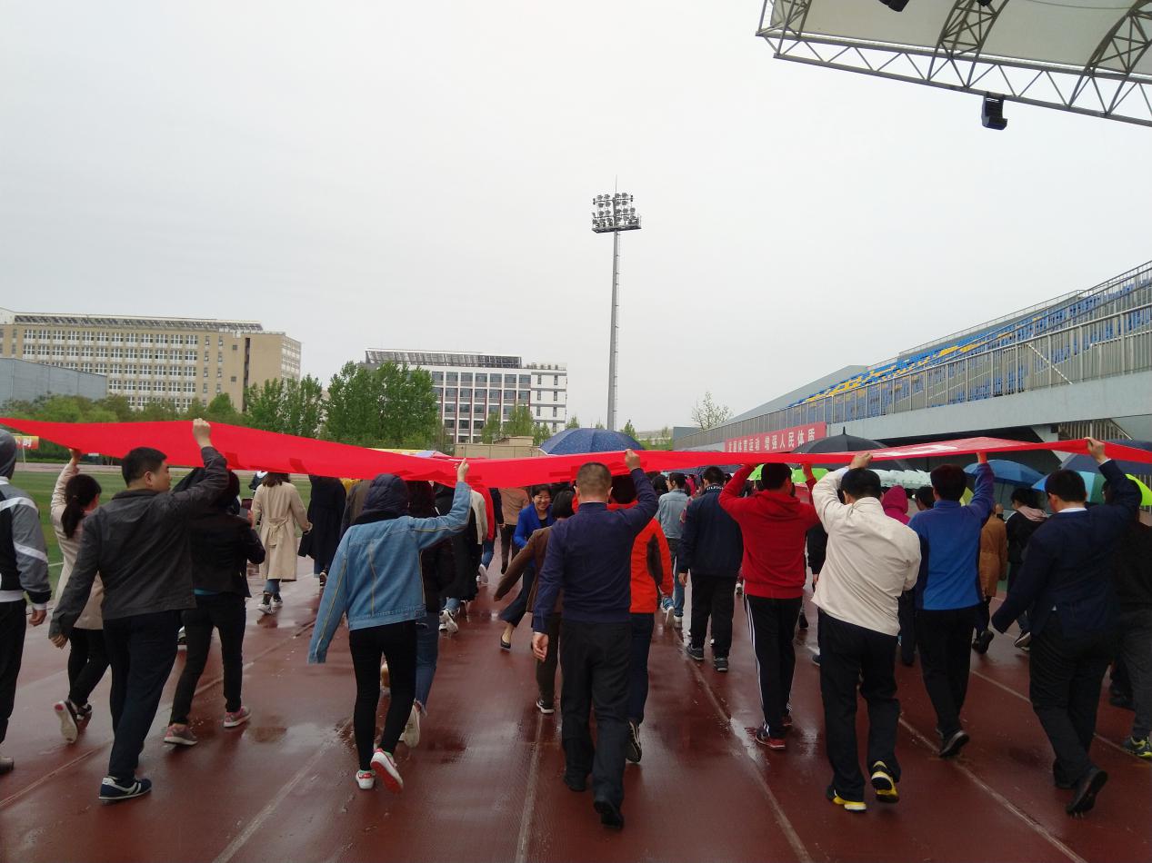 2019年3月24日下午,9428cn太阳集团古天乐教工曾筱清、曹晓燕、郑琳、许冰梅、张琪、蒙广平、杨威、刘燕、安新宇、张小平、沈健、尹力沉等12位老师参加了公司运动会开幕式入场及八段锦表演彩排。春雨霏霏,天气阴冷,老师们都按时到场,安新宇老师在医院刚做过散瞳检查,视力还没完全恢复的情况也按时出现在彩排现场。彩排中雨越下越急,老师们克服各种不适,冒雨完成了运动会开幕式彩排,很好的展示了9428cn太阳集团古天乐教师的集体荣誉感和凝聚力。