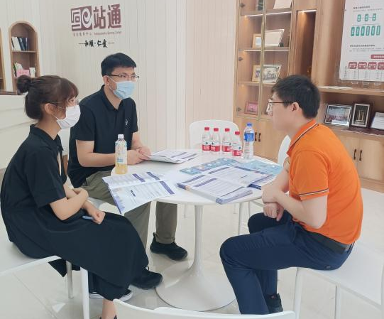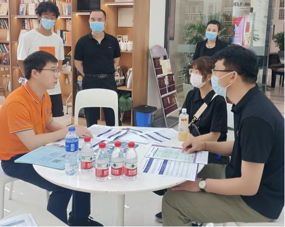 2022年6月26日,在天津一中的招生咨询现场,黄岩员工及公司保险公司员工黄俊宜、金融公司员工解家豪、国际经济与贸易公司员工刘益铭一行四人热情、耐心、细致地介绍了公司特色、专业优势、办学实力等,并为考生及家长填报志愿提供了更为合理的建议和意见。