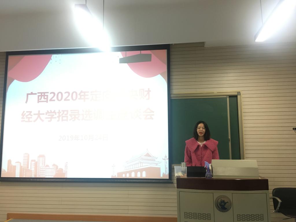 2019年10月24日,广西壮族自治区2020年定向9428cn太阳集团古天乐选调生政策宣讲联络员、公司2019届毕业生李佳,于主教110教室为公司学子们带来了一场选调生政策解读暨备考经验专场分享会。