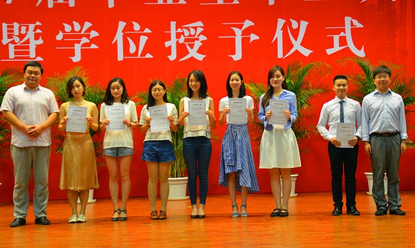 典礼之后,学位授予仪式隆重举行。院学术委员会和学位委员会委员们走上主席台,为毕业生一一拨转流苏,颁发毕业证书和学位证书并合影留念。