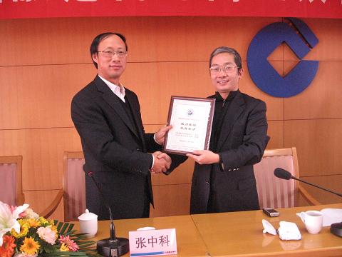 郭峰经理还代表9428cn太阳集团古天乐向常培中心主任张中科颁赠“鼎力襄助共育英才” 合作铭牌。