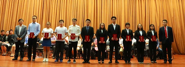 郭卫华先生、卢静女士、詹昊先生、张东成先生、孙文超女士、肖蕊女士等到场嘉宾以及公司领导班子成员、教师代表分别为获奖师生一一颁奖并合影留念,现场气氛热烈。